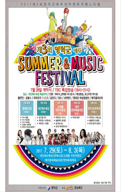 올해로 3년째를 맞아 한층 화려해진 라인업과 다채로운 음악으로 사이다 같은 여름휴가를 선사할 ‘영덕군 예주 썸머&뮤직페스티벌(이하 페스티벌)’이 열린다. 오는 29일 개막식부터 8월 3일까지 영덕 주요 피서지에서 공연되는 흥겨운 버스킹에 몸을 맡기고 더위를 날려 버리자.