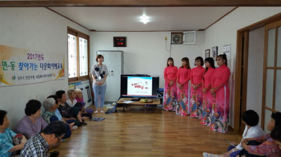 찾아가는 다문화 이해교육은 상주시 다문화가족지원센터에서 주관하며, 상주시 지역민을 대상으로 타 문화에 대한 이해를 높이고, 더불어 살아가는 세상 공동체 의식을 함양하고자 지역내 읍면동 경로당 및 마을회관 등을 방문하여 실시하는 교육이다. 이날 교육은 베트남에 대한 소개와 베트남의 문화를 알려주고, 전통 공연 및 전통 음식 체험 등으로 즐거운 한때를 보내며, 다문화에 대한 폭넓은 이해의 기회를 제공하는 유익한 시간이 되었다.