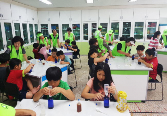 이날 학생들에게 악취를 제거하고 수질을 정화하는 등 실생활에 유용한 미생물인 EM (Effective Micro-organisms)을 활용한 세제 만들기 체험 교육을 진행했다.