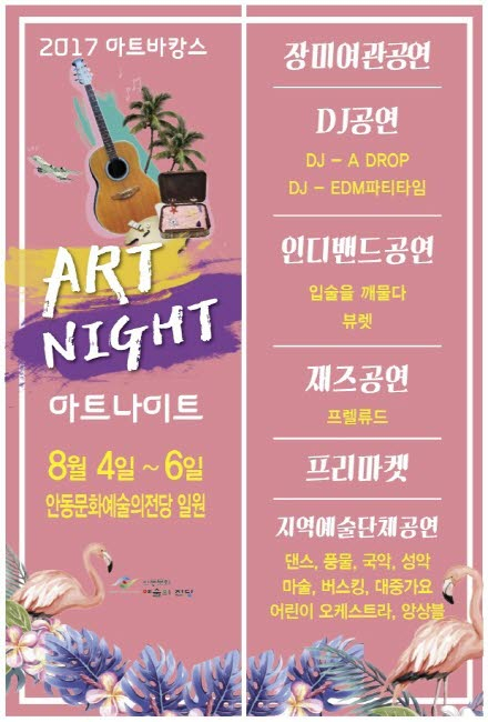 안동문화예술의전당은 오는 8월 4일부터 6일까지 3일간 전당 곳곳에서 ‘ART NIGHT’ 공간으로 변신한다.