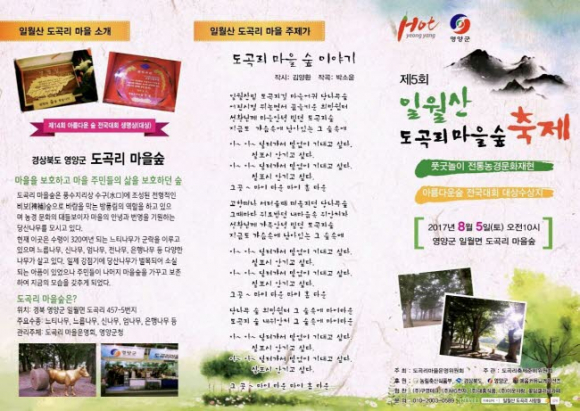 2017년 8월 5일(토) 일월산(해발 1219m) 자락 경북 영양군 일월산 도곡리 마을 숲에선 큰 잔치가 벌어진다. 2013년 처음 시작해 올해 다섯 번째로 이어지는 일월산 도곡리 마을숲 축제다.