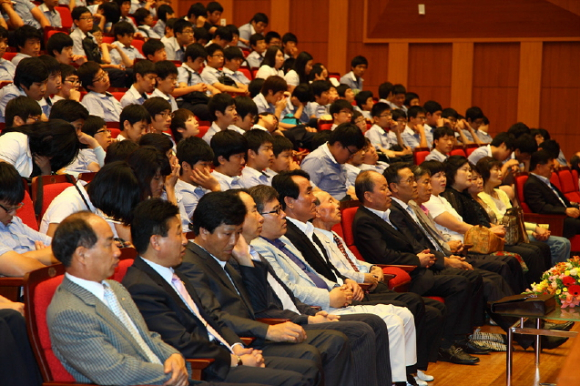 포항해양과학고등학교(교장 손철원)는 지난 7월 16일 재학생, 동창회, 학교운영위원회, 학부모회 회원 등 1000여명을 대상으로 모교 출신 청와대 춘추관장을 모시고 경상북도학생문화회관에서 특강의 시간을 가졌다.