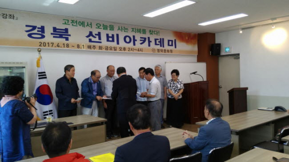 영덕군(이희진 영덕군수)이 주관하고, 영덕문화원(원장 류기도)이 추진한 2017 경북선비아카데미가 지난 1일 영덕문화원에서 강의를 마무리하는 수료식을 갖고 수료생 60명에게 수료증을 전달했다.