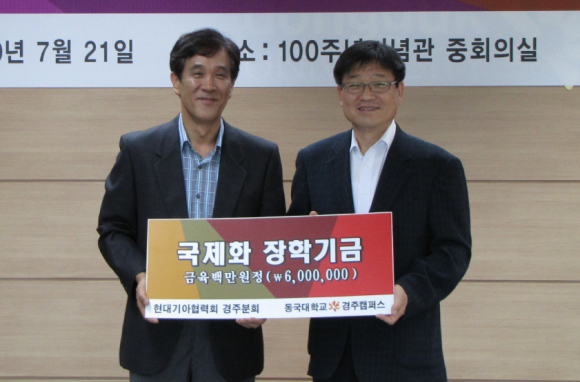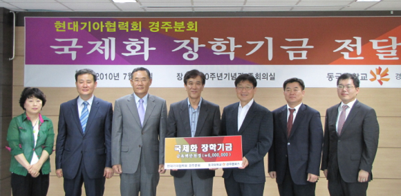 동국대학교 경주캠퍼스(총장 손동진)는 지난 21일 현대기아협력회 경주분회(지회장 (주)광진상공 대표 정기범)가 국제화 장학기금을 쾌척했다고 밝혔다.