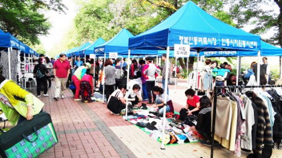 안동시자원봉사센터에서는 올해로 5년째“행복안동 벼룩시장”을 운영해 오고 있다. 시민 누구나 참여할 수 있으며 봉사 참가자에게는 3시간의 자원봉사활동 시간이 주어지며 벼룩시장에서 판매된 수익금 중 일부는 판매자의 동의를 얻어 20%정도의 자율기부를 받아 사회 환원활동, 재활용 캠페인, 사랑愛 연탄나누기행사 등에 사용하고 있다.