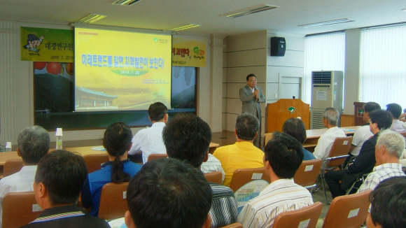 『미래 트렌드를 알면 지역발전이 보인다』라는 주제로 열린 이번 강의에서 이동수 박사는 메가 트렌드와 중앙정부의 정책 동향을 살펴보고 지역에의 발전방향과 대응전략을 제시하여 주민들로부터 호응을 얻었다.