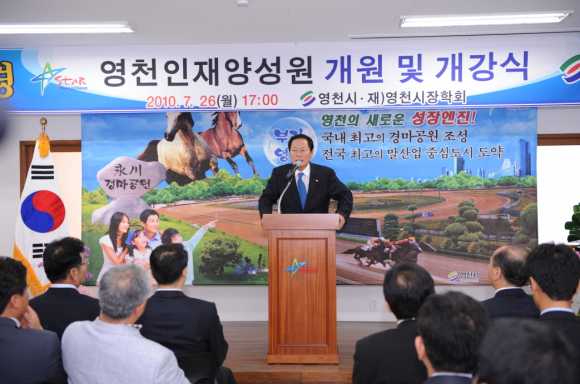 영천시(시장 김영석)는 26일 영천인재양성원(구 소방서, 성내동)에서 개원식을 가졌다. 이날 개원식에는 재)영천시장학회 김영석 이사장을 포함하여 정희수 국회의원, 김태수 영천교육장, 한혜련 ․ 김수용 경북도의원, 영천시의회 의원, 기관단체장, 각급 중․고등학교 교장선생님과 장학회 이 ․ 감사, 수강생 및 학부모 등 200여명이 참석하였으며 개원식과 오리엔테이션을 개최한 후 수업에 들어갔다.