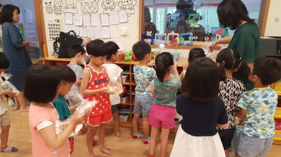 우리음식연구회는 지난 상반기 우리 쌀빵아카데미 교육을 통해 익힌 기술력으로 쿠키, 소보로, 단팥빵 3종 세트를 400여개를 직접 만들어, 관내 어린이집, 유치원에 나누어 졌다.