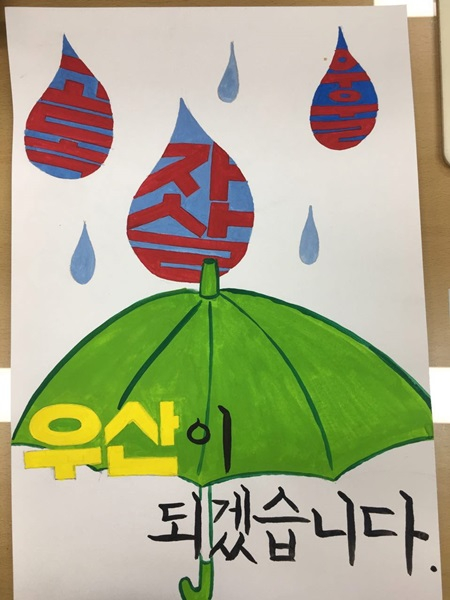 |  | | | ⓒ GBN 경북방송 | | 최우수 작품은 ‘기억 속 너 보다 함께하는 너’란 주제로 공모한 선린대학교 이진경 학생이 선정됐고 우수작은 ‘우산이 되어드립니다’이란 주제로 공모한 일반시민 최미현님과 ‘그 어떤 것도 당신의 생명보다 중요한 것은 없습니다’를 주제로 참가한 일반시민 이지연님이 우수작으로 선정됐다. |  | | | ⓒ GBN 경북방송 | |
