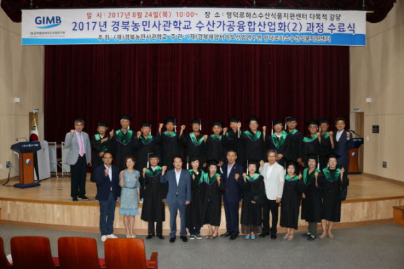 영덕로하스 수산식품 지원센터 강당에서 열린 수료식에는 김승태 경북농민사관학교장을 비롯 윤위영 부군수, 최재열 군의회의장, 경북도의원, 영덕군의원 및 (재)경북해양바이오산업연구원 김태영 연구원장 등이 참석한 가운데 교육생 21명에게 수료증을 수여했다.