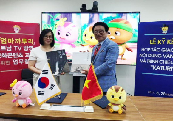 안동시(시장 권영세)는 베트남 최대 국영 방송사인 VTV와 엄마까투리 TV시리즈 방영 및 양국 간 문화 콘텐츠 교류를 위한 양해각서(MOU)를 28일 체결, 9월 20일부터 베트남 국영 교육채널인 VTV7에서 방영된다고 밝혔다. VTV7 응웬 띠 낌 호아 (Nguyễn Thị Kim Hoa) 사장을 비롯해 경북문화콘텐츠진흥원 김준한 원장, EBS 글로벌사업부 남한길 부장 등 관계자들이 함께 한 이번 협약식은 △ 안동시가 보유한 지역 대표 콘텐츠인 엄마까투리 TV시리즈의 베트남 VTV7 채널 방영, △ 경주세계문화엑스포 2017 홍보에 상호 협력, △ 베트남과 한국의 수교 25주년을 기념하기 위해 양국 간 문화콘텐츠 산업 협력 증진 등을 주요 내용으로 하고 있다. <엄마까투리> TV시리즈는 오는 9월 20일부터 12월 26일까지 베트남 국영방송 교육채널인 VTV7 황금시간대인 매주 수, 목, 금요일 아침 9시, 오후 6시 15분간 방영된다. <엄마까투리>가 담고 있는 가족애, 형제애, 그리고 자연에 대한 이야기는 인류가 공감할 수 있는 가치와 정서를 담고 있고 특히 유교적 전통의 문화적 동질성이 많은 베트남인들의 정서에도 잘 맞을 것으로 기대한다.