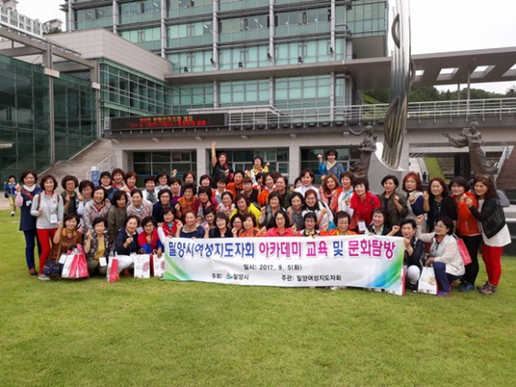 |  | | | ⓒ GBN 경북방송 | | 밀양여성지도자회(회장 곽병희) 회원 70여명이 ‘여성친화도시 포항’을 벤치마킹하고자 5일 포항시청 소회의실에서 여성아카데미 교육을 가졌다.