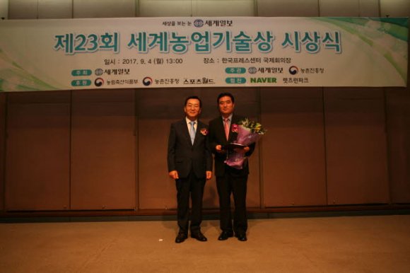 영양군농업기술센터는 제23회 세계농업기술상 기관단체부문 대상을 수상했다.