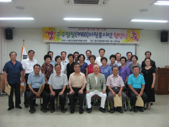 울진군종합자원봉사센터(소장 최기탁)에서는 2010년 7. 30(금) 17:00 울진군종합복지회관 2층 다목적실에서 60세 이상 어르신 봉사자들로 구성된 『구구팔팔(9988)자원봉사회』창단식을 가졌다.