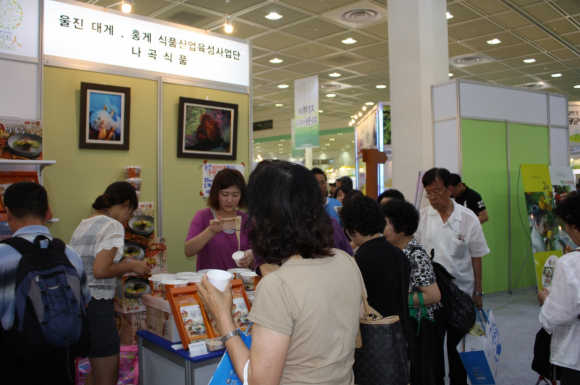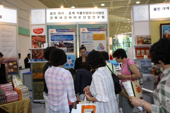 울진군(군수 임광원)은 경북해양바이오산업연구원(원장 김충곤)과 공동으로 추진하고 있는 농림수산식품부 향토산업육성사업 공동마케팅의 일환으로 지난 7월 28일~8월1일까지 서울 코엑스에서 개최된 제2회 농어촌산업박람회에 출품한 지역 특산물인 붉은대게를 응용한 붉은대게쌀국수(나곡식품), 붉은대게살(대후기업), 키토산한우·키토산김치(금호화성)등이 관람객으로부터 큰 인기를 얻었다. 올해 두 번째로 개최된 농어촌산업박람회는 ‘메이드 인 그린페어’라는 슬로건 아래 전국 76개 시·군, 300여개 농어촌기업체와 75개 우수브랜드가 참여하여 산학연 공동R&D와 장인정신을 통해 탄생된 농어촌 특산물 및 가공제품, 기능성 제품들이 각 지방의 명예를 걸고 전시 판촉활동에 들어갔다.