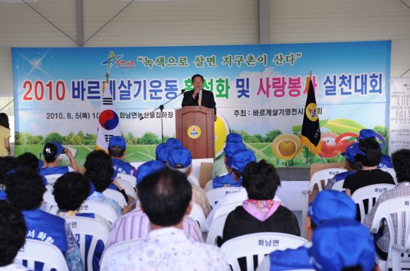 바르게살기운동 영천시협의회(회장 김일홍)에서는 지역사회발전을 위해 헌신해 온 바르게살기 위원들의 결속력을 다지고 어려운 이웃을 도와 함께 더불어 잘 살기 위한 참 사랑봉사 실천을 다짐하는 ‘2010바르게살기운동 활성화 및 사랑봉사 실천대회’를 바르게살기 위원 등 600여명이 참석한 가운데 5일화남면농산물집하장에서 개최했다.