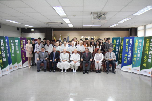 이날 수여식을 가진 장학회는 ▲선도장학회(이시장 선도스님) ▲관음장학회(이사장 만오스님) ▲길상장학회(이사장 지운스님) ▲나무심장학회(이사장 김순이) ▲무금사장학회(이사장 무이스님) ▲박여련화장학회(이사장 박필순) ▲백년장학회(이사장 보안스님) ▲연진은성장학회(이사장 은성‧연진스님) ▲정진인장학회(이사장 변금연) ▲천지당장학회 ▲태영장학회(이사장 김광호) ▲혜선장학회(이사장 혜선스님) ▲보리사장학회(이사장 보인스님) ▲철우장학회(이사장 철우스님)등 총 14개 장학회로, 불교인재 양성을 위하여 동국대학교 경주캠퍼스 재학생 39명에게 총 4천 4백만 원의 장학금을 수여했다.