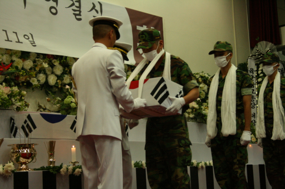 |  | | | ⓒ GBN 경북방송 | | 이날 영결식은 이진모 사단장을 비롯한 주요 지휘관과 보훈단체․기관장, 참전용사 등 200명이 참석한 가운데 경과보고와 동영상 시청, 시낭송, 조사, 종교의식, 헌화 및 분향, 조총 및 묵념, 유해운구, 봉송 순으로 진행됐다.