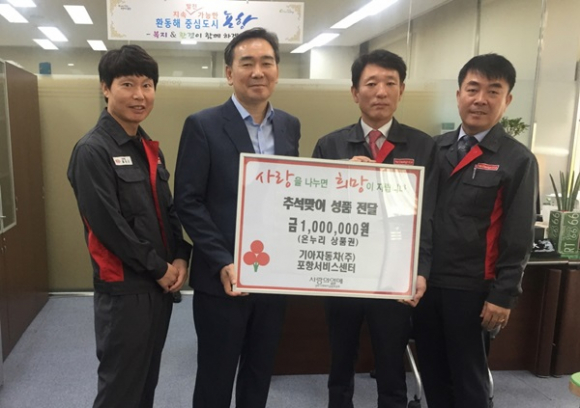 |  | | | ⓒ GBN 경북방송 | | 지난 22일에는 (사)국제위러브유운동본부 포항북구지부(지부장 류진종)에서 추석명절 선물로 100만원 상당의 식용유, 햄 등의 생필품과 라면 20세트를, 기아자동차(주) 포항서비스센터(센터장 김효선)는 온누리상품권 100만원을 기탁했다.