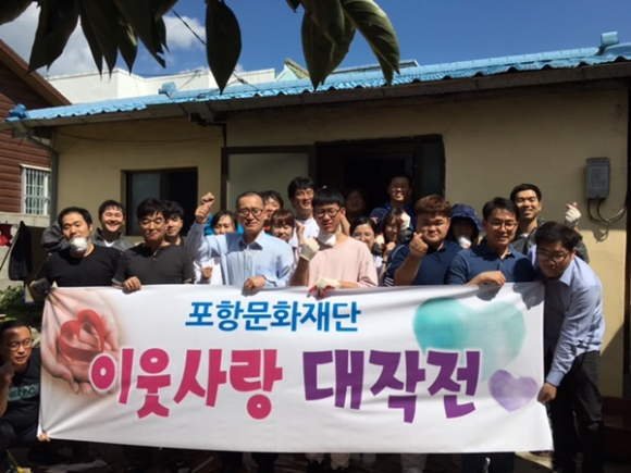 집수리가 끝난 뒤에는 9월 2일 포항문화재단이 주관한 문화예술아카데미(PACE) 부부 연극 ‘다시 설렘’ 발표회에 입장료 대신 자율 기부 형태로 받은 생필품을 전달했다. 문화로 꽃피운 나눔의 손길이 소외된 이웃에 직접 전달되는 뜻 깊은 행사였다.