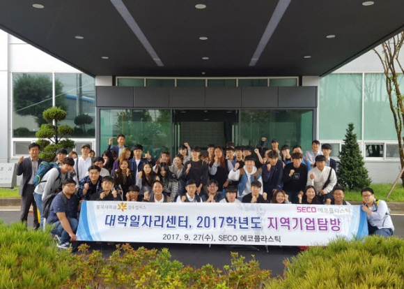 동국대학교 경주캠퍼스 대학일자리센터(센터장 김신재)는 지난 27~28일에 거쳐 경주지역 내 우수 중견기업 탐방을 진행했다. 이 프로그램은 지역 내 우수 중견기업 방문을 통해 기업에 대한 인식을 제고하고 청년 일자리 미스매치 해소를 위해 실시되었고, 동국대학교 경주캠퍼스 대학생 및 지역 청년 160여명이 참여하였다. 27일에는 SECO에코플라스틱(주), 28일은 영신정공(주)를 방문했다. 해당 기업 인사담당자가 청년들에게 기업 소개, 채용프로세스 설명, 질의 응답 등을 진행했다. 청년들은 기업 현장에서 제조 프로세스를 직접 보며 지역 기업에 대한 이해를 높였다.