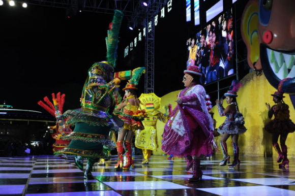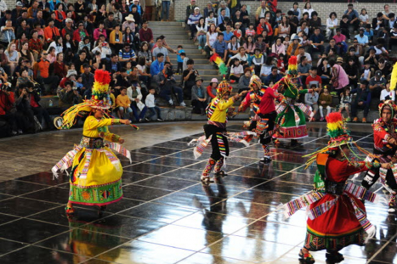 ▲ 100여개의 국내외 탈춤을 한자리에 볼 수 있는 글로벌 축제 올 축제에는 처음으로 탈춤축제를 찾은 볼리비아를 비롯해 불가리아, 말레이시아, 중국, 일본 등 12개국 13개 단체 해외 공연단이 축제를 찾아 이색적이면서 발랄하고, 생기 넘치는 춤 등으로 관객을 사로잡았다. 국내에서도 하회별신굿탈놀이를 비롯해 봉산탈춤, 북청사자놀음, 가산오광대 등 12개의 국가무형문화재 공연팀이 한국탈춤의 진수를 보이며 한국의 아름다움을 전했다. 이 밖에도 지역민이 주축이 되어 탈춤축제와 함께 성장해 온 80여 개의 자유참가작도 축제를 재미 속으로 빠져들게 했다.