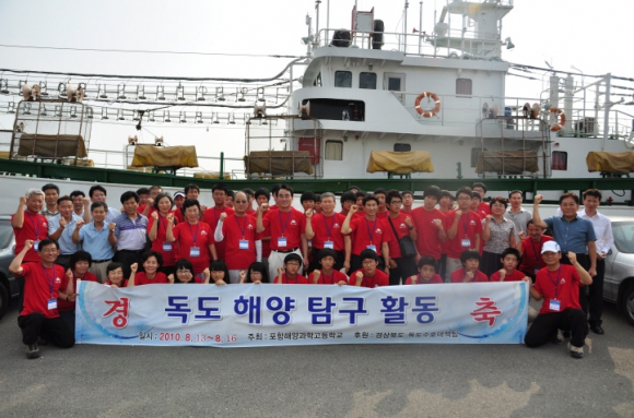 포항해양과학고등학교(교장 손철원)는 지난 8월 13일 관내 중학교 3학년 재학생과 교직원, 총동창회 임원 등 62명이 독도해양탐구활동을 위하여 출항식을 갖고 본교 실습선에 승선하여 출항했다.