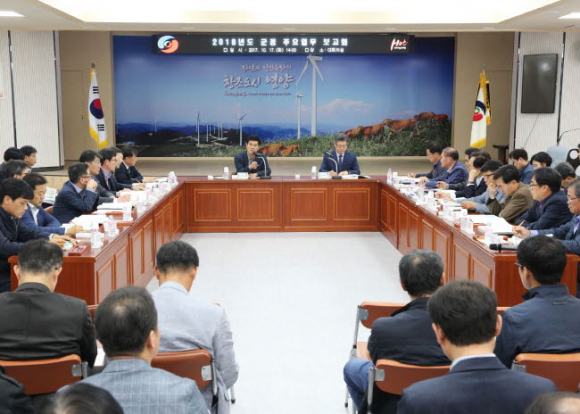 영양군(군수 권영택)은 17일 군청 대회의실에서 실과단소장 및 담당이 참석한 가운데‘2018년도 군정 주요업무 보고회’를 개최했다.