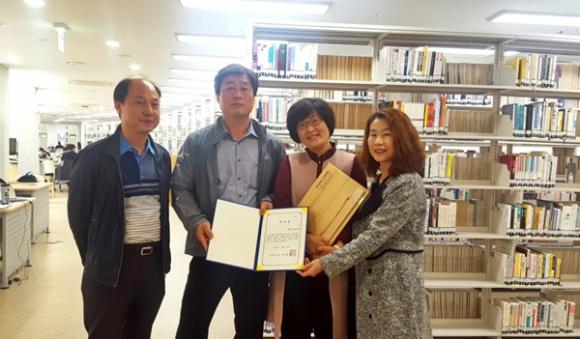 포항시 서점조합 포항시립도서관에 독서대 기증