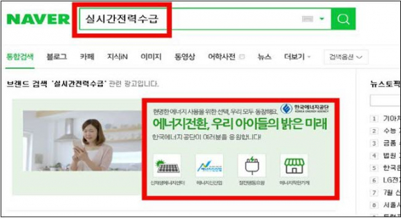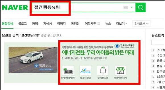 검색어, ‘에너지절약, 절전행동요령, 실시간전력수급’등 15개 검색어 지정해놓고 정부 탈원전, 신재생 홍보로 뜨게 해