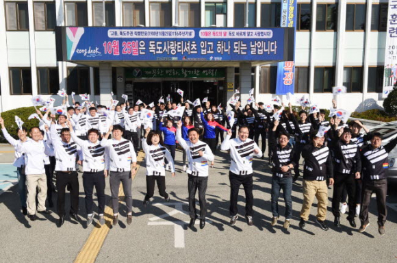 이희진 군수는 “같은 날 같은 옷을 입고 출근한 모습에서 직원들의 독도사랑을 확인할 수 있었다. 계속해서 독도문제에 관심 갖고 독도사랑을 실천하겠다.”고 말했다. |