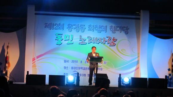 경주시 용강동 청년회(회장 서병진)는 지난 21일 저녁 6시 용강초등학교 운동장에서 제12회 용강동 화합의 한마당 노래자랑 대회를 2천여명의 주민과 관내 기관단체장들이 참석한 가운데 성대하게 개최되었다.