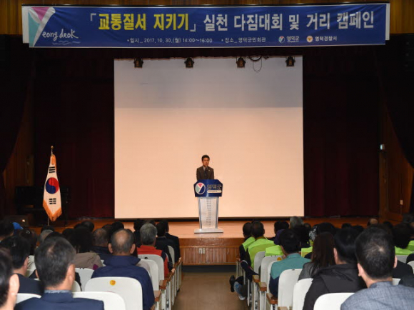 지난 30일 영덕군민회관과 영덕읍시가지에서 올바른 교통질서 지키기 확산을 위한 다짐대회와 합동 거리캠페인이 열렸다. 영덕군, 영덕경찰서(서장 전오성), 30개 사회단체가 참여했다.