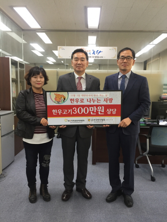 편경욱 포항시지부장은 “청탁금지법 시행이후 한우 소비 침체 등으로 많은 한우농가가 어려움을 겪고 있지만 11월 1일 ‘대한민국이 한우 먹는 날’을 맞아 한우농가에 힘이 되고 시민에게는 한우가 안전하고 좋은 먹거리임을 알리고자 한우 나눔 행사를 실시하게 됐다.”고 말했다.