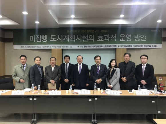 동국대학교 경주캠퍼스 지역정책연구소(소장 박병식)와 동국부동산학회(회장 김용주)가 지난 9일 오후 6시 교내 백주년기념관 세미나실에서 ‘미집행 도시계획시설의 효과적 운영방안’을 주제로 공동 세미나를 개최했다.