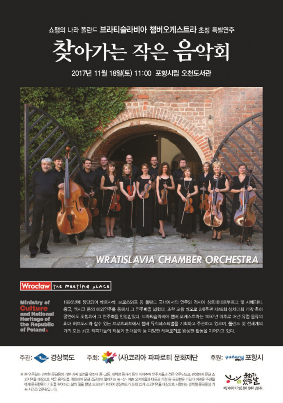 경상북도가 주관하고 포항시가 후원하며 (사)코리아 파파로티 문화재단에서 주최하는 이번 음악회는 쇼팽의 나라 폴란드에서 내한한 ‘브라티슬라비아 챔버오케스트라 초청 특별 연주를 선보일 예정이다.