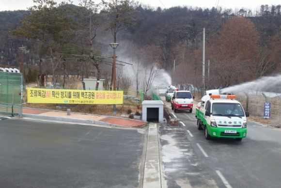 안동시시설관리공단은 최근 전북 고창 오리농가에서 고병원성AI가 발생하고 AI 위기경보가 심각 단계로 격상됨에 따라 AI 확산 초기에 선제적 차단 방역을 위해 25일부터 관람객 출입통제 및 방역을 실시한다.