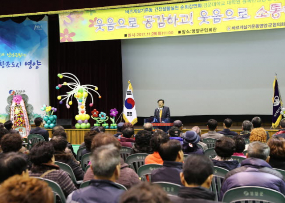 바르게살기운동 영양군협의회(회장 최현동)는 11월 28일(화) 바르게살기운동 활성화를 위하여 2017년 건전생활순회강연회 및 한마음결의대회를 개최했다.