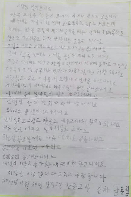 안동시,「찾아가는 한글배달교실」학사모 쓰고 졸업식
