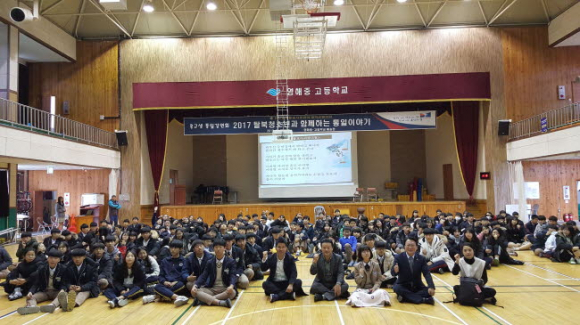 민주평화통일자문회의 영덕군협의회(회장 김진덕)는 11월 29일 10:00 영해중·고등학교 예송관에서 영해중 전교생, 교사, 자문위원등 240여명에게 탈북청소년 및 북한 문화 이해하기 특별참여교육을 실시했다.