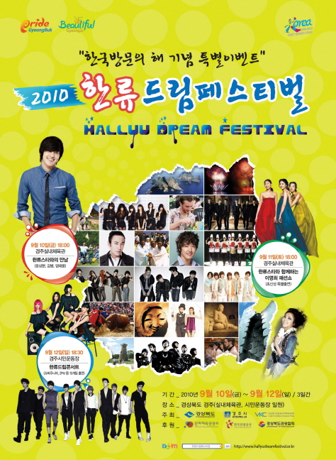 경상북도, 경주시, 한국방문의해 위원회가 공동 주최하고 문화체육관광부가 후원하는 한국방문의해 기념 특별이벤트축제 ‘한류드림페스티벌’이 오는 9월 10일(금)~9월12(일)까지 경주시 황성공원 일원에서 화려하게 개최된다.