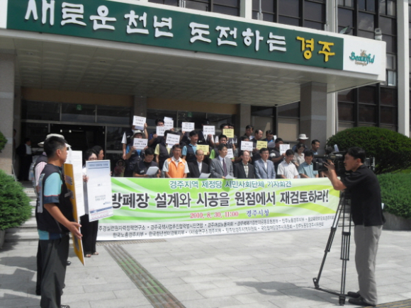 그러자 8월 30일 오전 경주환경운동연합과 경주경실련 원자력정책연구소 등은 경주시청에서 기자회견을 갖고 "방폐장 사일로와 하역동굴의 안정성 확보가 불가능하다는 내부문건이 드러났다"며 "방폐장 건설을 즉시 중단하고 설계와 시공을 원점에서 재검토하라"고 주장했다.