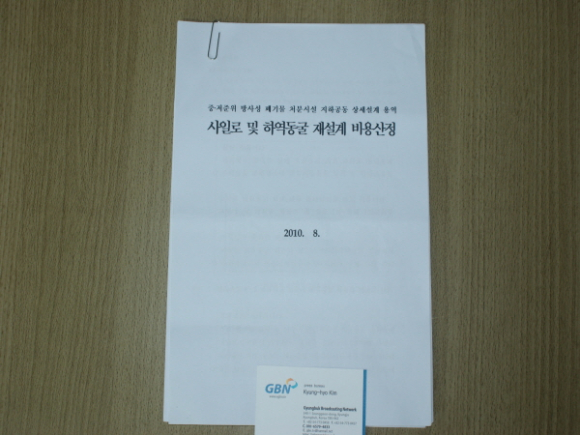 |  | | | ↑↑ 문제의 보고서 '중저준위 방사성 폐기물 처분시설 지하공동 상세설계 용역 사일로 및 하역동굴 재설계 비용산정' | | ⓒ GBN 경북방송 | |