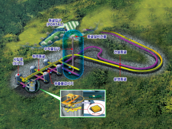경주 중•저준위 방사성폐기물 처분장은 경주시 양북면 봉길리 일원에 총 80만 드럼 규모로 건설되고 있으며 현재 1단계 10만 드럼 규모 동굴처분 방식 공사가 진행 중이다.