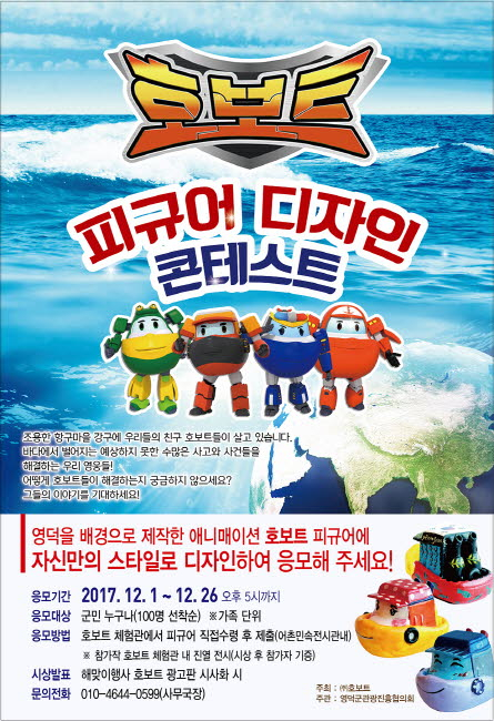 영덕홍보로봇 “호보트”의 피규어 디자인 콘테스트가 12월 1일부터 12월 26일까지 열린다.