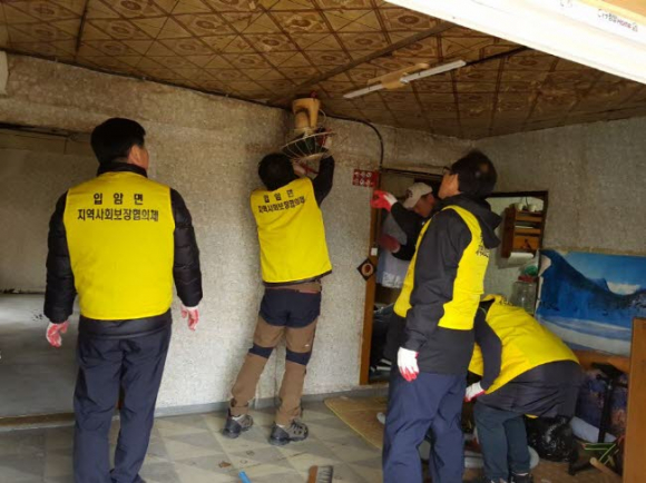 또한 이날 관내 가정폐기물과 생활쓰레기로 주거환경정비가 필요한 독거어르신가구에 대해 입암면지역사회보장협의체 위원들의 노력봉사로 대대적인 환경정비가 실시됐으며, 입암면지역사회보장협의체가 발굴한 자원인 관내 태극전기와 연계하여 시급하게 전기 공사가 필요한 2가구를 선정하여 재능기부로 전기안전공사도 함께 추진됐다.
