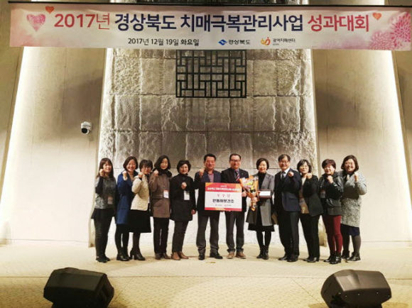 안동시는 경상북도가 주최한 ‘2017년도 치매극복관리사업 성과대회’에서 우수기관으로 선정돼 12월 19일 안동 그랜드 호텔에서 경상북도 시․군 치매사업담당자 250여 명이 참석한 가운데 우수기관상을 수상했다.