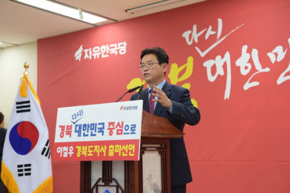 자유한국당 이철우 의원이 20일 오후 경북도청에서 기자회견을 열고 내년 지방선거 경북도지사 출마를 선언하며 국회의원, 당 최고위원, 김천시 당협위원장 3직을 사퇴할 것을 재확인했다. 이 의원은 과거 서울과 자웅을 겨뤘던 경북이 ‘덩치 큰 변방의 낙후지역’취급을 받고 있는 현실을 우려하며, 경북을 다시 대한민국의 중심으로 도약시키겠다고 포부를 밝혔다.