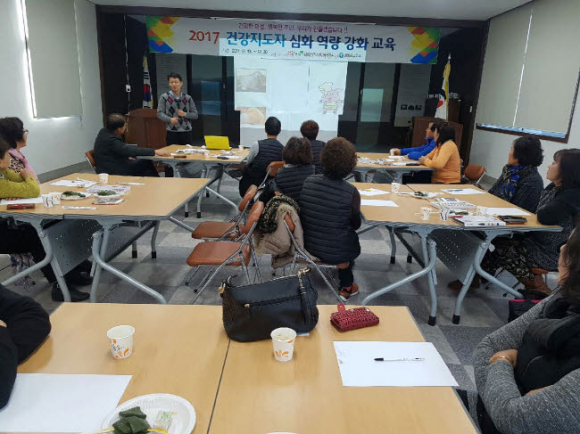 보건소 건강새마을 담당자는 “이번 교육을 통해, 건강지도자가 진정한 역량을 발휘해 주민 스스로가 우선적인 보건문제해결과 건강수준을 향상할 수 있도록 지원하고 앞으로도 활력 넘치는 입암면 건강새마을을 만들어 가는데 더욱 노력하겠다.”고 전했다. |