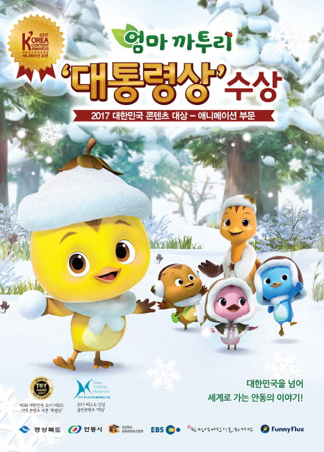 △안동 대표 콘텐츠 엄마까투리, 국내 대표 애니메이션으로 우뚝 2017년의 화두는 단연 ‘엄마까투리’일 것이다. 안동시 일직면 출신 아동문학가 故권정생 선생이 생전에 마지막으로 쓰신 ‘엄마까투리’ 동화를 기반으로 안동시는 경북문화콘텐츠진흥원의 전신인 안동영상미디어센터와 함께 2010년 28분짜리 극장판을 제작했고, 단편영화로는 최초로 단독 극장개봉과 10만여 명이 관람하고 해외에 초청되는 등 국‧내외에서 큰 호평을 받으며 화제를 불러일으켰다.